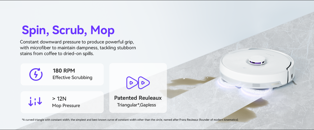 Deeper and Safer Clean: The patented high-speed spinning mop pads apply 12N downward force, featuring a triangular design for seamless rotation, leaving no streaks behind. This ensures deep cleaning without harming various flooring types such as vinyl, tile, laminate, hardwood floors, and marble.